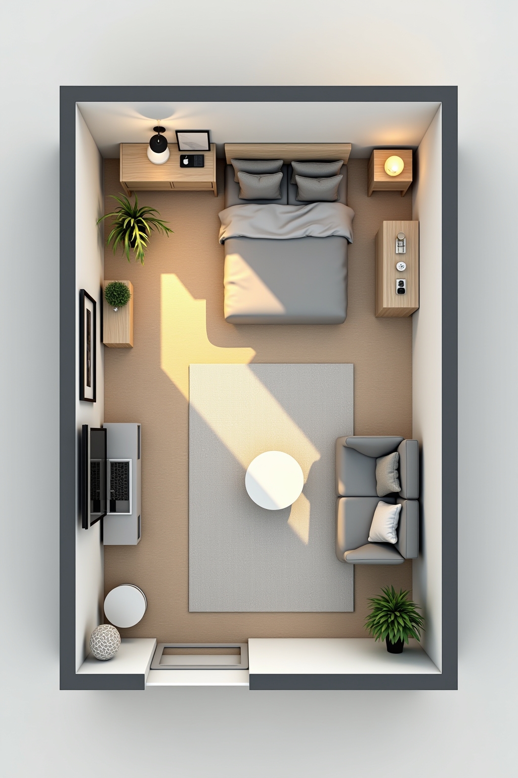 Zonenplanung: Definiere Bereiche für Schlafen, Wohnen, Essen und Arbeiten, um Ordnung und Struktur zu schaffen.