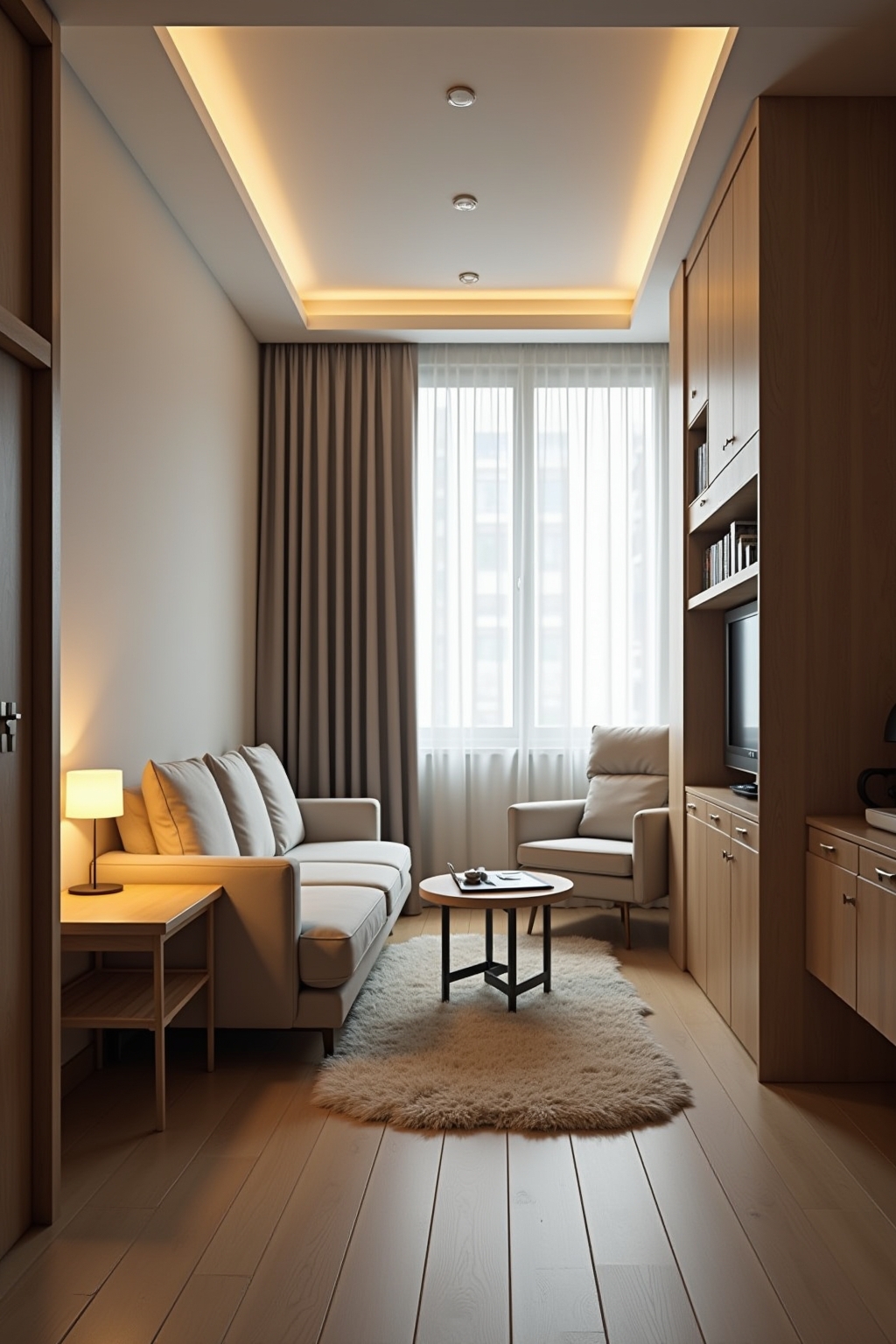 Ein durchdachtes Lichtkonzept ist für Kleinstwohnungen besonders wichtig. Kombinieren Sie verschiedene Lichtquellen statt einer zentralen Deckenleuchte. Indirekte Beleuchtung durch Wandlampen oder LED-Streifen hinter Möbeln schafft Tiefe und vergrößert das Studio optisch. Für jede Wohnzone sollten Sie spezifische Lichtquellen einplanen: ein Leselicht am Sofa, Arbeitsbeleuchtung am Schreibtisch und stimmungsvolle Akzentbeleuchtung im Essbereich. Dimmbare Lampen ermöglichen flexible Lichtstimmungen. In Mini-Apartments sind Stehlampen mit schmalem Fuß platzsparende Alternativen zu Tischleuchten. Reflektierende Oberflächen wie Spiegel verstärken die Lichtwirkung zusätzlich. Achten Sie auf warmweißes Licht für Wohnbereiche und kühleres Licht für den Arbeitsplatz. Smarte Beleuchtungssysteme erlauben zudem die Anpassung an unterschiedliche Tageszeiten und Aktivitäten.