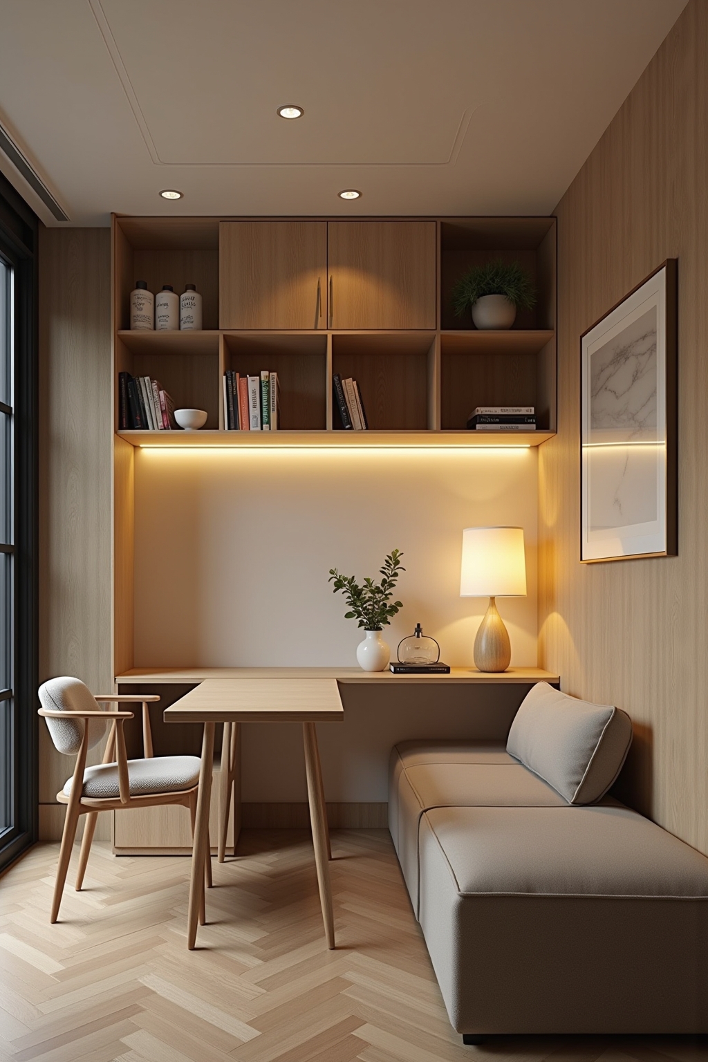 Multifunktionale Einrichtungsgegenstände sind in kleinen Appartements unverzichtbar. Klappbetten, die tagsüber an der Wand verschwinden, oder Schlafsofas verwandeln den Schlafbereich im Nu in einen Wohnraum. Ausziehbare Esstische bieten bei Bedarf Platz für Gäste, lassen sich jedoch kompakt zusammenschieben. Hocker mit integriertem Stauraum dienen als Sitzgelegenheit und Aufbewahrungsort zugleich. Besonders praktisch sind Couchtische mit höhenverstellbarer Platte, die zum Arbeiten oder Essen hochgefahren werden können. Schmale Konsolentische an der Wand nehmen wenig Grundfläche ein, während Hängeregale die Wände effizient nutzen und die kleine Wohnung optisch vergrößern.