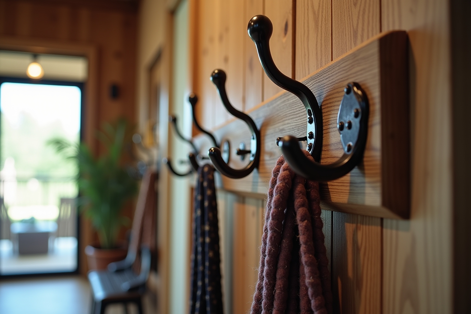 🐾 Tipp 1: Wandhaken aus Holz oder Metall sind besonders platzsparend und lassen sich leicht in jeden Eingangsbereich integrieren.