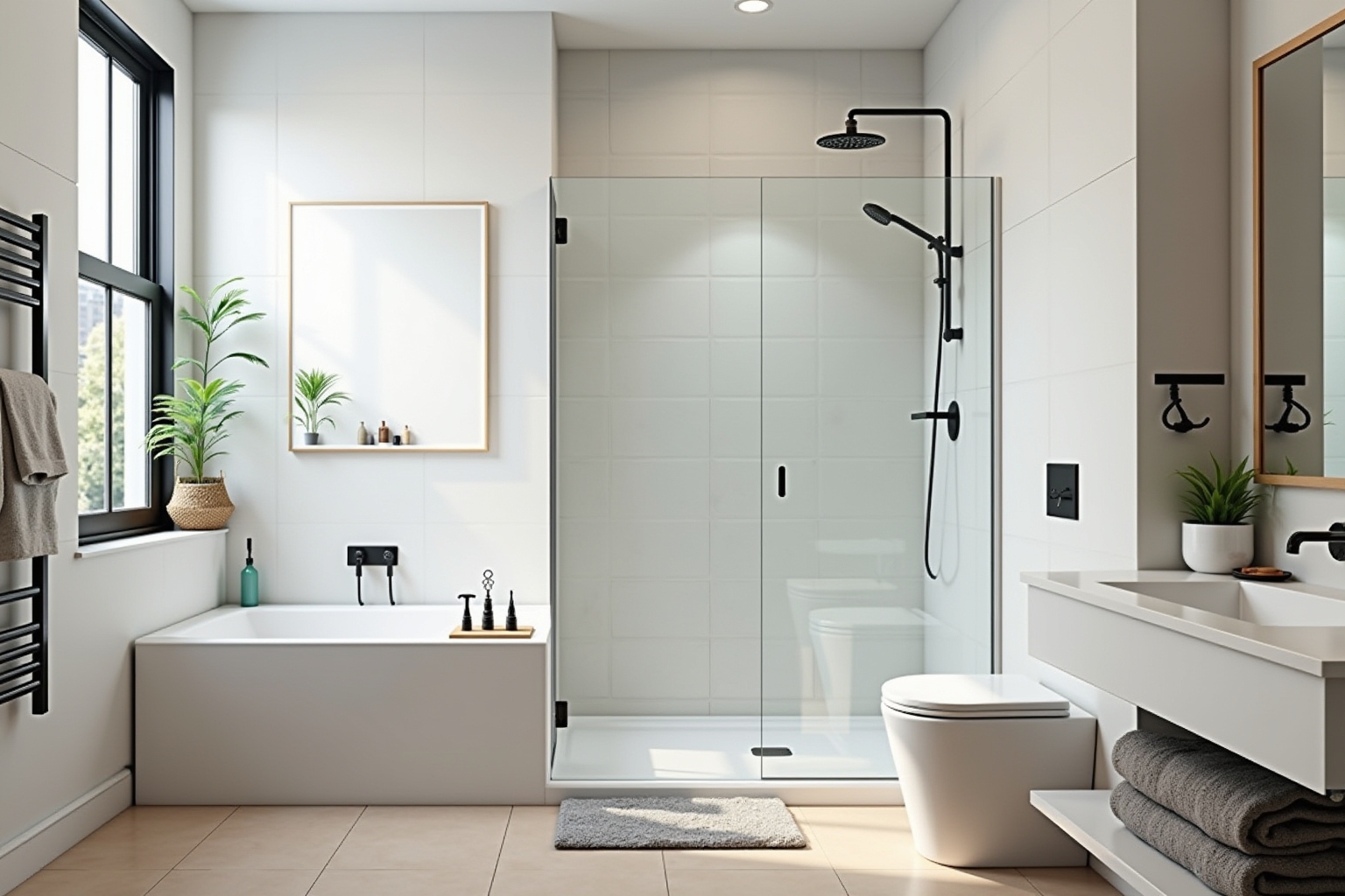 Für eine zeitgemäße Duschmodernisierung sind großformatige Fliesen aus Feinsteinzeug ideal, da sie weniger Fugen benötigen und so Schimmelbildung reduzieren. Alternative Wandverkleidungen wie Duschpaneele aus Mineralguss, Acryl oder Verbundmaterialien bieten eine fugenlose Oberfläche und schnelle Montage. Bei Duschwannen punkten emaillierter Stahl und Acryl mit hoher Haltbarkeit, während bodengleiche Duschen mit Mineralguss oder gefliesten Duschflächen mit integriertem Gefälle modern wirken. Für die Duschkabine empfehlen sich 8-10 mm starkes Einscheibensicherheitsglas mit Antikalk-Beschichtung sowie hochwertige Armaturen aus verchromtem Messing mit Keramikkartusche. Die Materialwahl sollte stets nach Langlebigkeit, Pflegeleichtigkeit und Feuchtebeständigkeit getroffen werden.