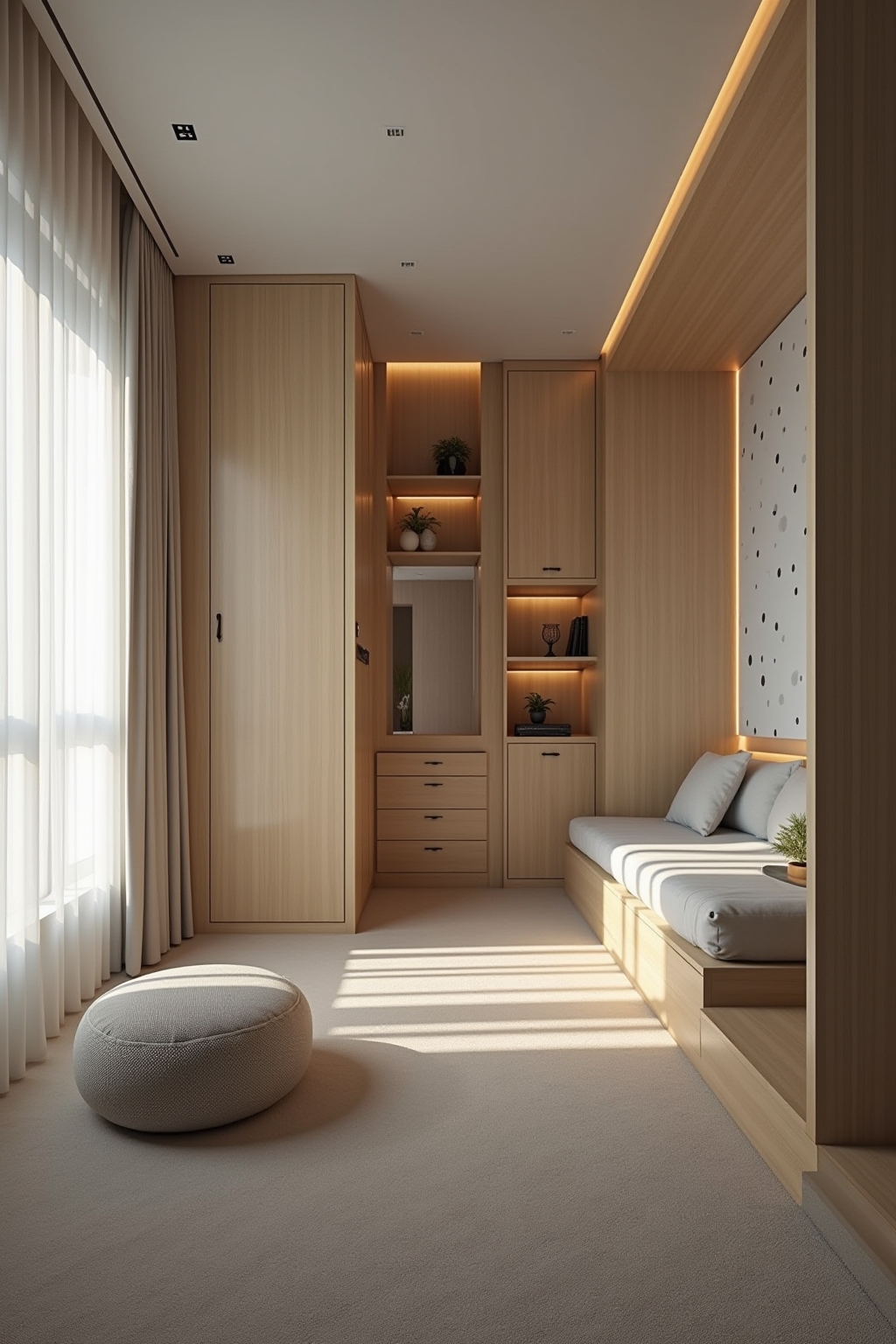 Bei begrenztem Platz ist durchdachte Stauraumplanung essenziell. Nutzen Sie die volle Wandhöhe mit bodentiefen Schränken oder hohen Regalsystemen. Untergenutzte Bereiche wie der Raum unter dem Bett eignen sich hervorragend für flache Aufbewahrungsboxen. Türrückseiten können mit Haken oder schmalen Regalen ausgestattet werden. Vakuumbeutel reduzieren das Volumen von Saisonkleidung und Bettwäsche. Im Miniappartement sind auch Möbel mit integrierten Staufächern praktisch – etwa ein Bettgestell mit Schubladen oder ein Hocker mit abnehmbarem Deckel. Verwenden Sie Organisationssysteme wie Körbe oder Boxen, die sich optisch ins Gesamtbild einfügen und gleichzeitig Ordnung schaffen.