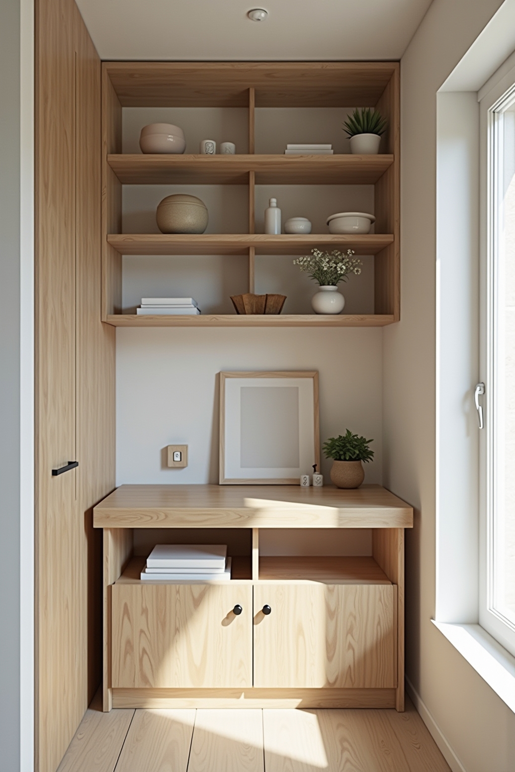 Ein funktionaler Heimarbeitsplatz lässt sich auch im kleinsten Studio unterbringen. Fensternischen eignen sich ideal als natürlich beleuchteter Arbeitsbereich. Klappschreibtische oder ausziehbare Arbeitsflächen verschwinden bei Nichtgebrauch und sparen wertvollen Platz im Miniappartement. Eine Alternative bietet ein schmales Wandregal in Tischhöhe oder ein Sekretär mit verschließbarer Arbeitsfläche. Der Essplatz kann tagsüber als Homeoffice dienen, wenn Sie einen bequemen Stuhl wählen. Achten Sie auf gute Beleuchtung und organisierte Kabelführung. Ein rollbarer Bürocontainer lässt sich unter den Schreibtisch schieben und bietet Stauraum für Arbeitsmaterialien, ohne den Wohncharakter zu beeinträchtigen.