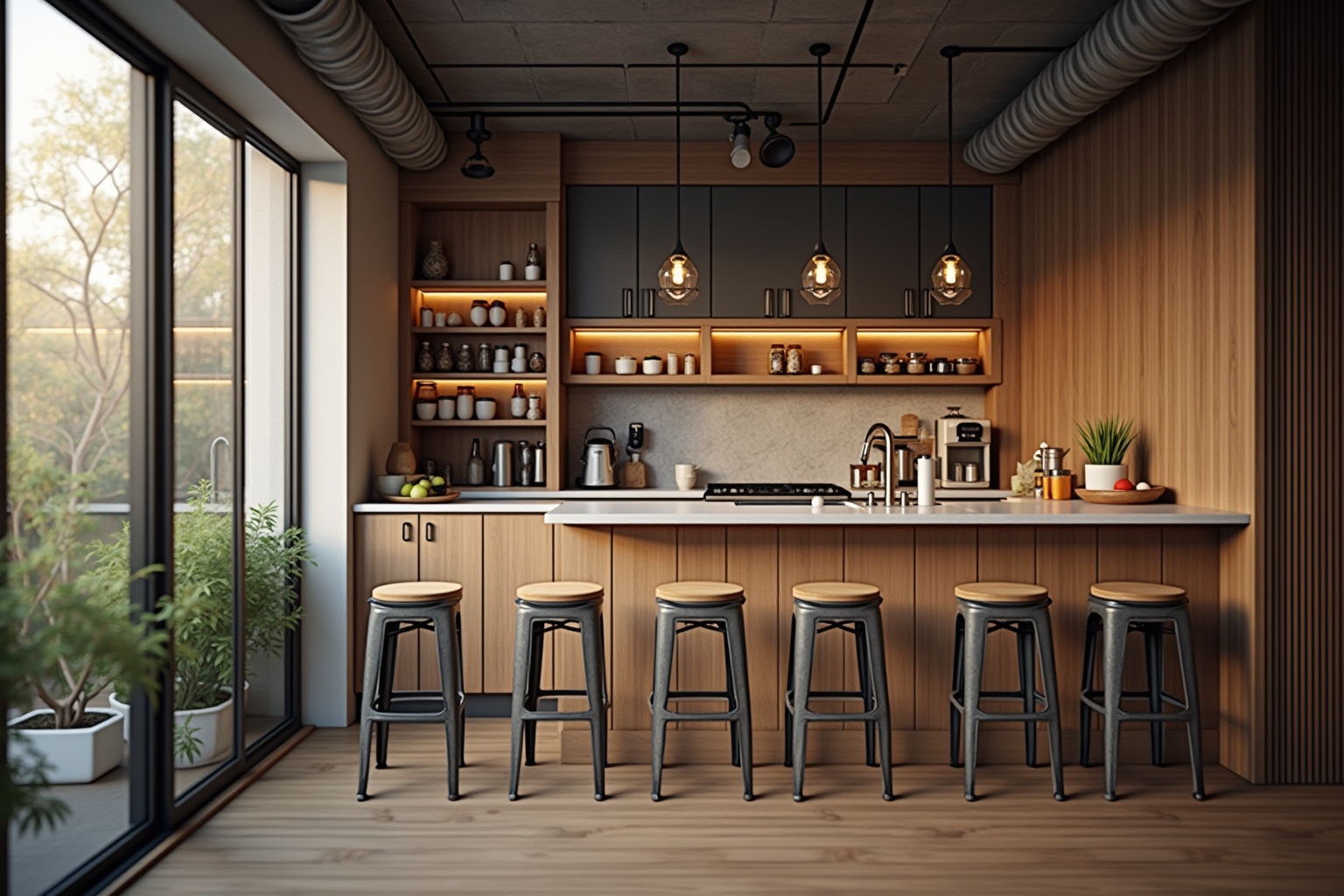 Frühstücksbar mit Industrial-Hockern – Stil und Funktion vereint