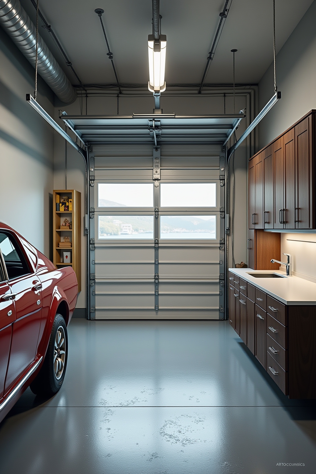 Eine multifunktionale Garagen-Einrichtung ermöglicht es Ihnen, sowohl Ihr Auto unterzubringen als auch Ihrem Hobby nachzugehen, ohne zusätzlichen Raum zu benötigen. Durch clevere Raumaufteilung mit verschiebbaren Werkbänken und klappbaren Arbeitsflächen schaffen Sie flexiblen Platz, der sich an Ihre jeweiligen Bedürfnisse anpasst. Hochwertige Wandsysteme mit Haken und Halterungen sorgen dafür, dass Werkzeuge und Materialien griffbereit, aber dennoch platzsparend verstaut sind. Ein durchdachtes Beleuchtungskonzept mit verschiedenen Lichtquellen für allgemeine Ausleuchtung und spezifische Arbeitsbereiche rundet die Multifunktionalität perfekt ab.