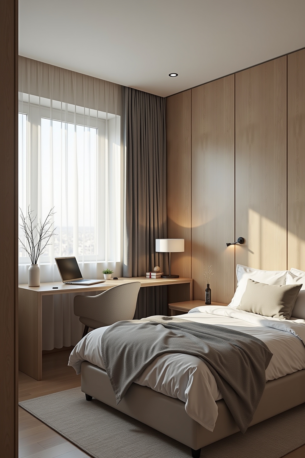 Multifunktionale Möbel: Betten mit integriertem Stauraum oder klappbare Schreibtische sparen wertvollen Platz in kleinen Schlafzimmern.