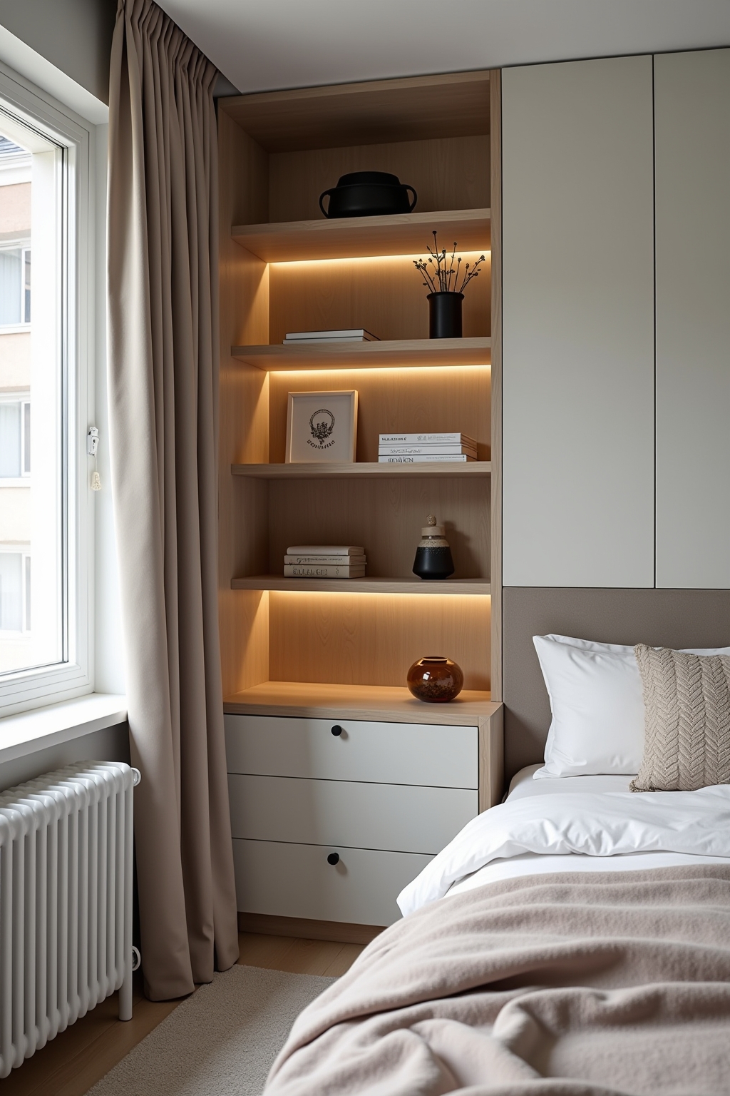 In kleinen Schlafzimmern zählt jeder Zentimeter, weshalb multifunktionale Möbelstücke wahre Raumwunder sein können. Betten mit integrierten Schubladen nutzen den sonst verschenkten Stauraum unter der Liegefläche optimal aus und bieten Platz für Bettwäsche, Kleidung oder saisonale Gegenstände. Wandklappbetten, die tagsüber hochgeklappt werden können, verwandeln das Schlafzimmer im Handumdrehen in einen zusätzlichen Wohnraum. Schmale, hochaufragende Kommoden nutzen die vertikale Raumhöhe effektiv und bieten dennoch ausreichend Stauraum für Kleidungsstücke. Nachttische mit mehreren Ebenen oder als Wandmontage sparen wertvollen Bodenplatz und runden das platzsparende Einrichtungskonzept harmonisch ab.