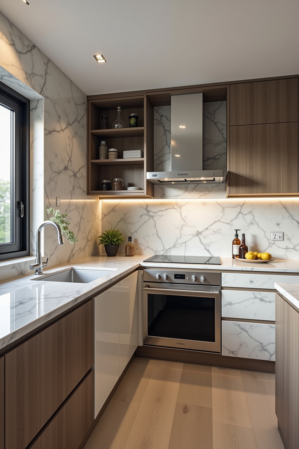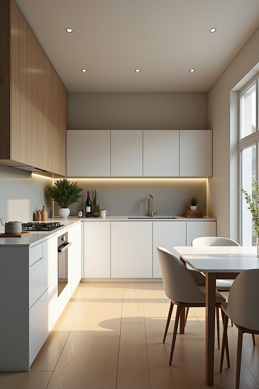 Kleine Küchen profitieren von hellen Farben und reflektierenden Oberflächen, die den Raum optisch vergrößern.