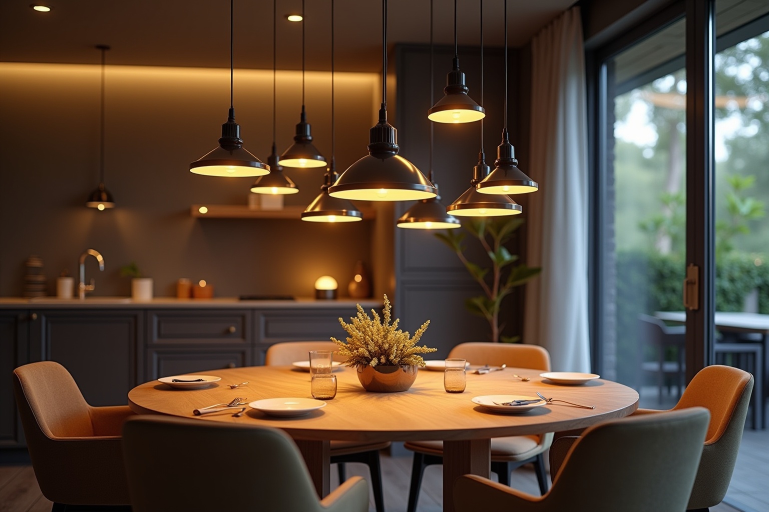 🎨 Doppelte Funktion: Pendelleuchten dienen gleichzeitig als Lichtquelle und Dekoelement, das den Esstisch optisch in Szene setzt.
