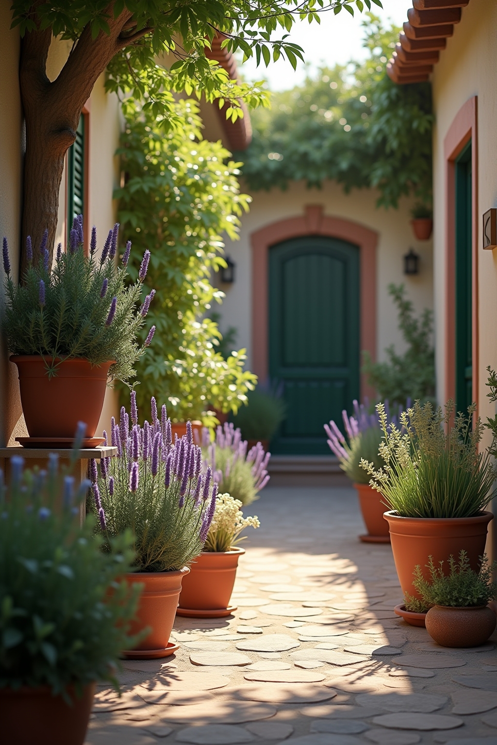 • Mediterrane Kräuter wie Lavendel und Rosmarin eignen sich perfekt für sonnige Terrassenumrandungen.