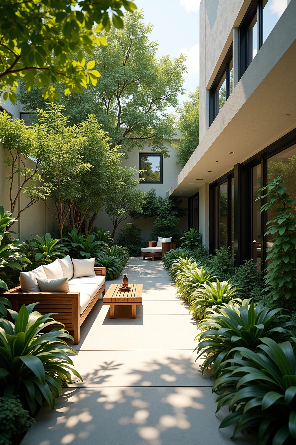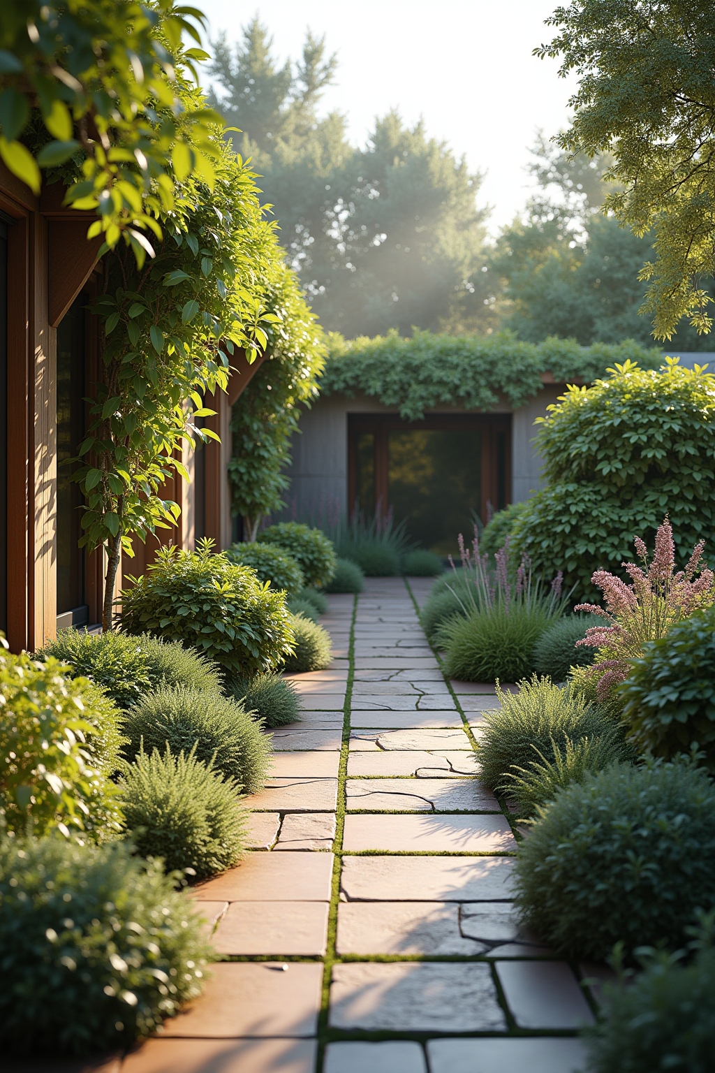 Immergrüne Pflanzen wie Buchsbaum oder Eibe bieten ganzjährigen Sichtschutz, während Kletterpflanzen wie Efeu oder wilder Wein vertikale Flächen begrünen und Platz sparen.