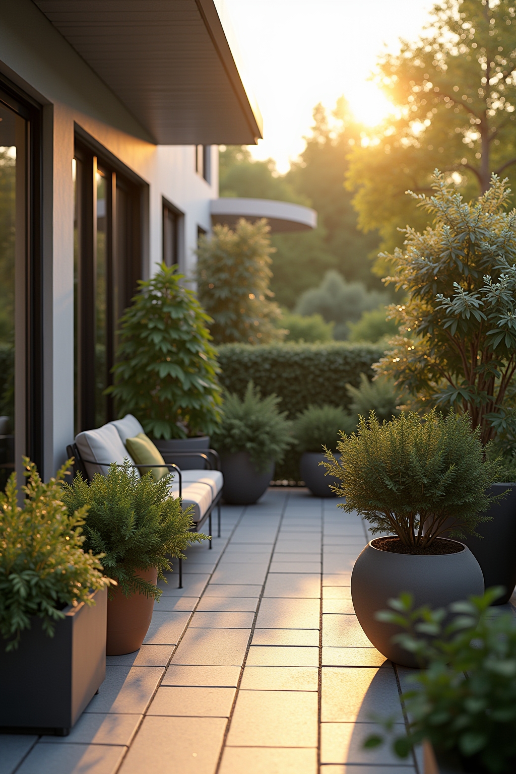 Wie integriere ich Kübelpflanzen optimal in die Terrassenumrandung?