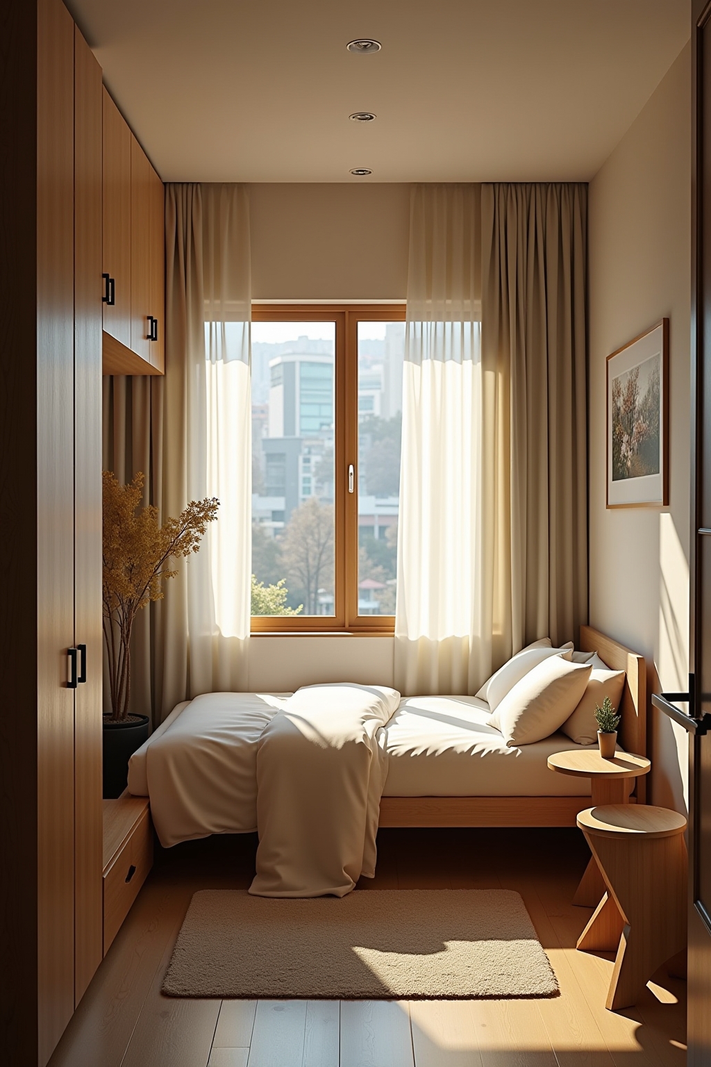 Ein durchdachtes Farbkonzept bildet die Grundlage für ein einladendes Gästezimmer, wobei beruhigende Töne wie Pastellblau, sanftes Grün oder warme Beige-Nuancen für eine entspannende Atmosphäre sorgen. Kombinieren Sie verschiedene Texturen durch flauschige Teppiche, weiche Überwürfe und mehrere Kissen in unterschiedlichen Größen, um dem Raum Tiefe zu verleihen und ihn gemütlicher zu gestalten – ähnlich wie bei der Gestaltung eines schmalen Kinderzimmers, wo jeder Zentimeter sinnvoll genutzt werden muss. Setzen Sie auf multifunktionale Möbelstücke wie ein Schlafsofa mit integriertem Stauraum oder einen Sekretär, der gleichzeitig als Nachttisch und Arbeitsplatz dienen kann, um den verfügbaren Platz optimal zu nutzen. Vervollständigen Sie das Ambiente mit persönlichen Akzenten wie stimmungsvollen Lichtquellen, einer kleinen Vase mit frischen Blumen und einem Tablett mit Wasserkaraffe, um Ihren Gästen zu zeigen, dass Sie an alles gedacht haben.